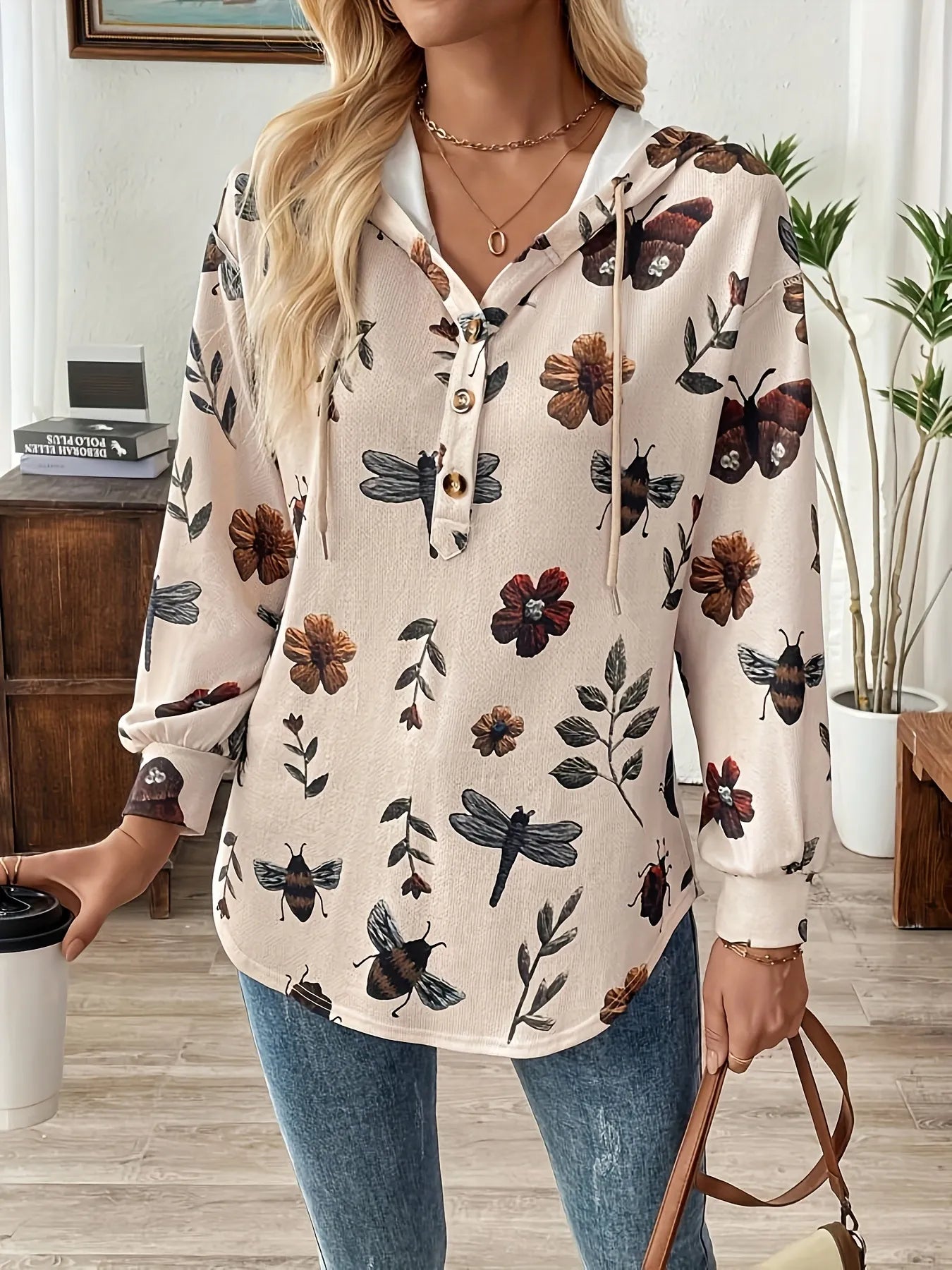 This cozy waffle knit hoodie features a stylish side slit design and button details, perfect for adding a trendy touch to your wardrobe. Stay comfortable...