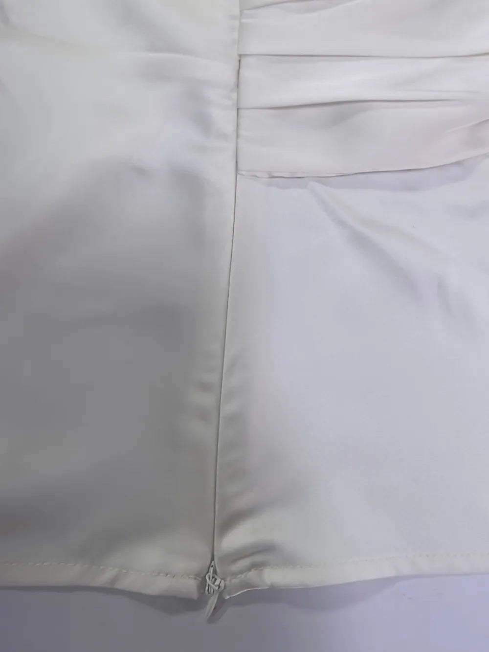 This stunning surplice sleeveless satin blouse combines timeless elegance with modern sophistication. Crafted from premium satin material, it features a luxurious lustrous finish that catches light beautifully. The wrap-front surplice design creates a flattering V-neckline while the self-tie waist belt accentuates your curves for an hourglass silhouette. The sleeveless construction makes it perfect for layering or wearing alone in warmer weather. The asymmetrical hemline adds contemporary appeal, while the gathered shoulder details provide elegant draping. This versatile piece transitions effortlessly from professional settings to evening occasions, making it an essential addition to any fashion-forward wardrobe.